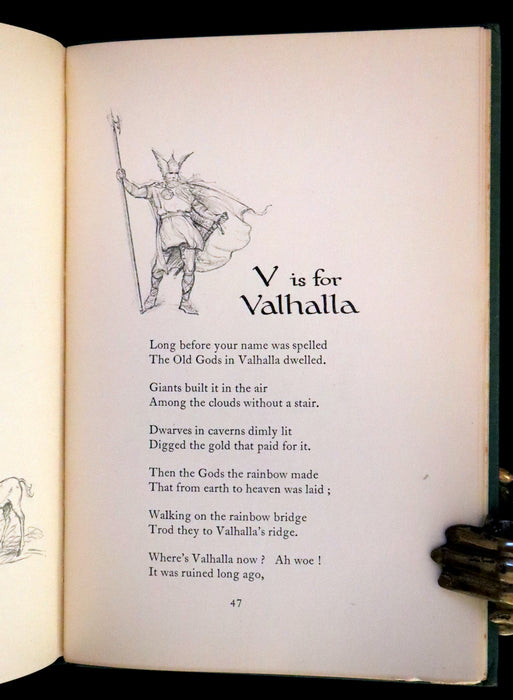 The book: This first edition of An Alphabet of Magic is a charming and imaginative collection of rhymes by the celebrated poet and children's author Eleanor Farjeon. Each letter of the alphabet is infused with an element of magic, mythology, or wonder, from "A is for Abracadabra" to "D is for Dragon" and "I is for Invisibility." This creative and playful exploration of language and fantasy captures the whimsy of childhood and the timeless allure of fairy tales.