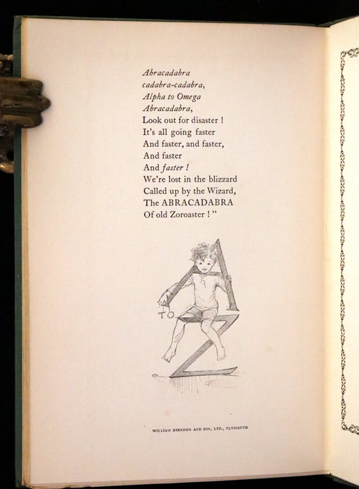 Binding: Very good original publisher’s green cloth binding with a gilt illustration of a magician on the front cover, gilt lettering to spine (hinges fine, overall slightly worn, sunned and scuffed - as shown) in a good rare original dust jacket (small chips and tears, light staining and foxing - as shown, price clipped), featuring an elegant border design with an illustration of a child wielding a magical wand, under a protective removable mylar cover.