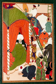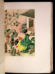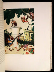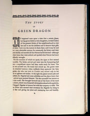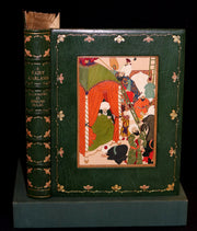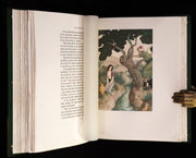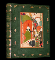 Binding: Attractive and fine binding bound in the style of Kelliegram by Asprey in full green morocco leather with an inset panel to the front cover depicting Dulac's illustration for "The Search for the Lost Phoenix" in brilliantly colored leather onlays. Covers, spine, edges, and turn-ins also bear floral gilt work, rules, and lettering, along with lilac leather onlays (hinges fine). Upper edge gilt. This exquisite binding is also housed in a fine leather entry slipcase.