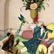 The illustrator: Edmund Dulac (born Edmond Dulac; October 22, 1882 – May 25, 1953) was a French-born, British naturalized magazine illustrator, book illustrator, and stamp designer. Born in Toulouse he studied law but later turned to the study of art at the École des Beaux-Arts. He moved to London early in the 20th century and in 1905 received his first commission to illustrate the novels of the Brontë Sisters. During World War I, Dulac produced relief books, and when after the war the deluxe children's book market shrank he turned to magazine illustrations among other ventures. He designed banknotes during World War II and postage stamps, most notably those that heralded the beginning of Queen Elizabeth II's reign.