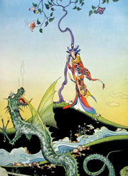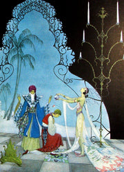 A year after the publication of Old French Fairy Tales, a new title including commissioned works from Sterrett was presented by the Penn Publishing Company—Tanglewood Tales (1921). From 1923, in failing health, Sterrett was able to work on projects for short periods of time only and as a result, she was able to complete just one further commission prior to her death—her own interpretation of Arabian Nights (1928). Her best-known work is the suite of illustrations for Arabian Nights (1928). She died of tuberculosis.