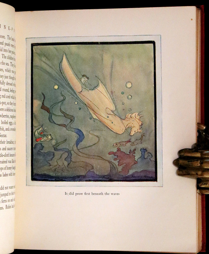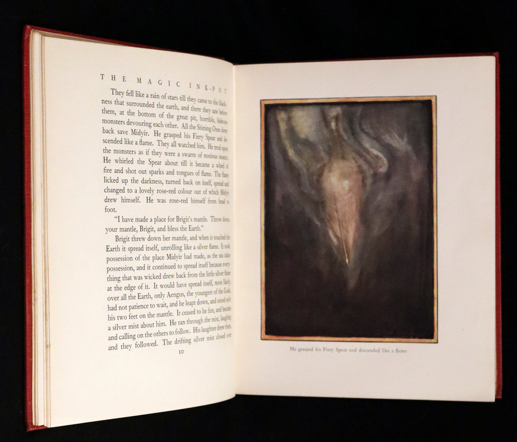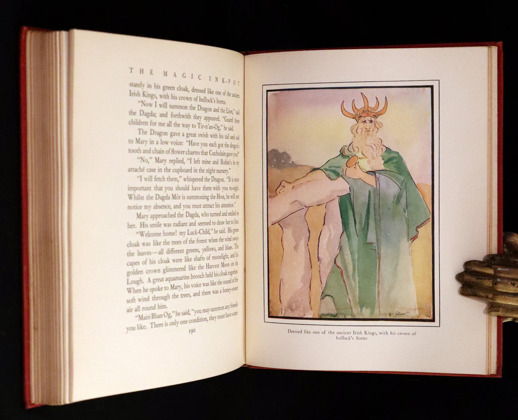 The book: Attractive and Rare first edition of the Magic Ink-Pot by the Marchioness of Londonderry. Lady Londonderry notes in the foreword to the book that she wrote most of the stories as letters to her daughter while she was away in Spain, and was honored to have returned home and found them typewritten and enjoyed so much that she added others with the addition of Celtic legends woven into the narrative. The wonderful illustrations were contributed by the famous illustrator and watercolor artist Edmund Brock and by Lady Londonderry’s daughter Margaret.