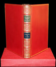 Binding: Attractive fine full polished red calf leather with five raised bands, green morocco title labels, gilt titles and elaborate gilt decorative panels on the spine, double gilt ruling to front and rear boards, gilt inner dentelles, finely bound by Riviere & Son (hinges fine) under a protective removable mylar cover. All edges gilt. Housed in a very good red cloth slipcase.
