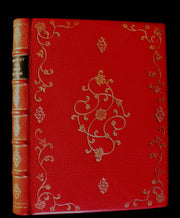Binding: Attractive, beautiful, and fine full red morocco unsigned leather binding stamped in gilt, black leather title label (hinges fine) under a protective removable mylar cover. A unique exquisite binding for a wonderful book!