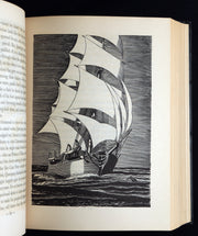 The illustrator: Rockwell Kent (1882–1971) was a prominent American artist, printmaker, and illustrator known for his distinctive woodcut style and adventurous spirit. His illustrations for Moby Dick, first produced for the Lakeside Press edition of 1929, are considered among the most celebrated interpretations of any literary text. Kent’s stark and dynamic imagery brought new life and visual depth to Melville’s prose, and this 1930 Random House edition ensured his work reached a broader public.
