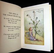 The book : Rare and very nice early edition with the dustjacket of this exquisite volume by Cicely Mary Barker. One of the great fairy texts, personifying every variety of flower of the Summer with a fairy child. The back of the jacket has twelve previous publications by the author (including this one) , the latest (A Little Picture Hymn Book) being published in 1929, making this title's publication date sometime in the early 1930s.