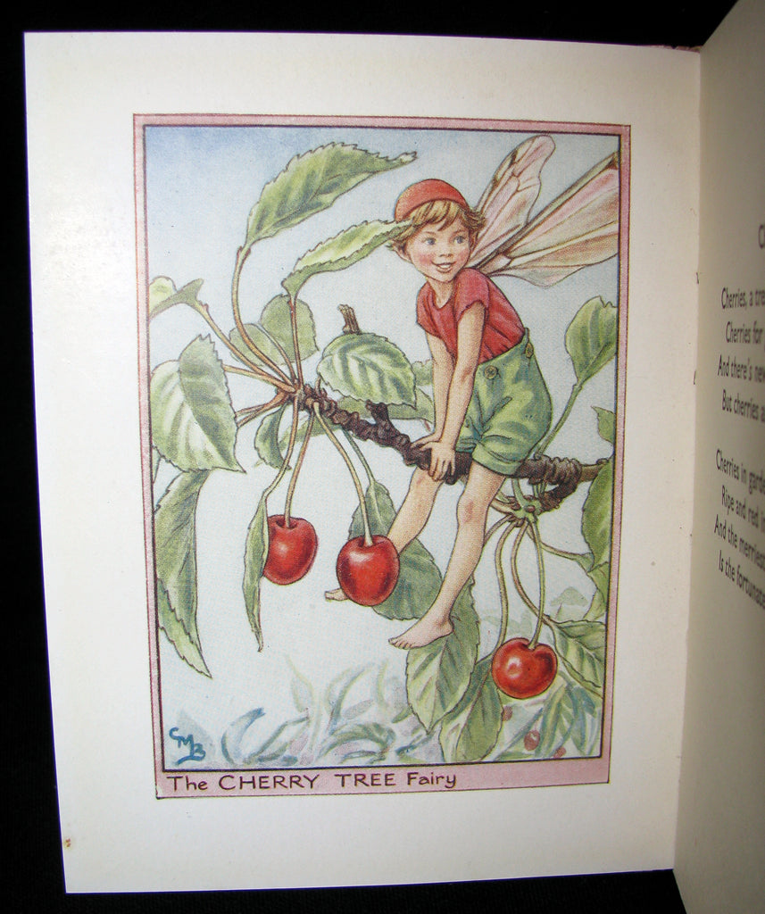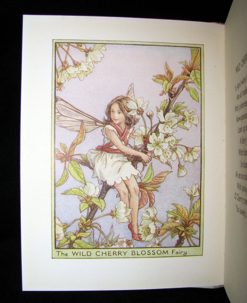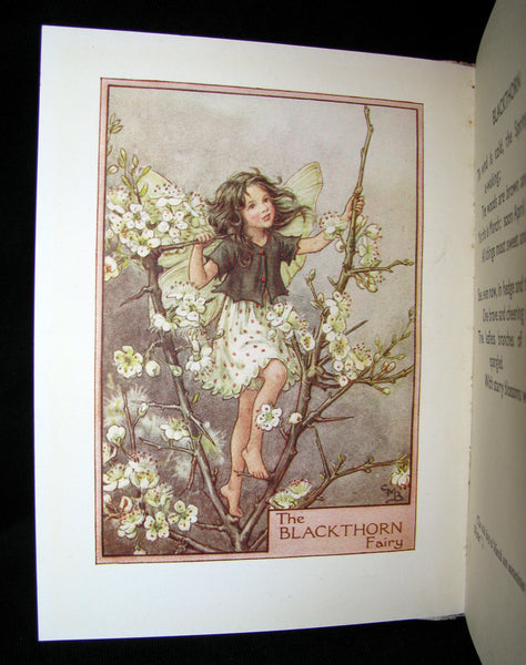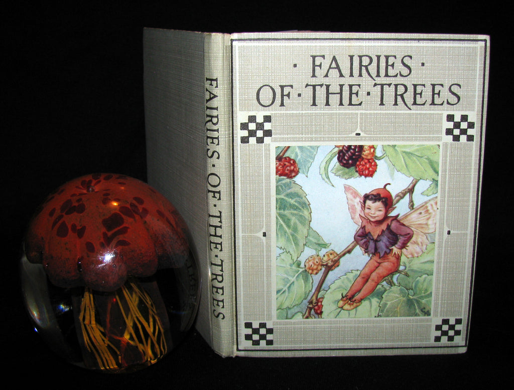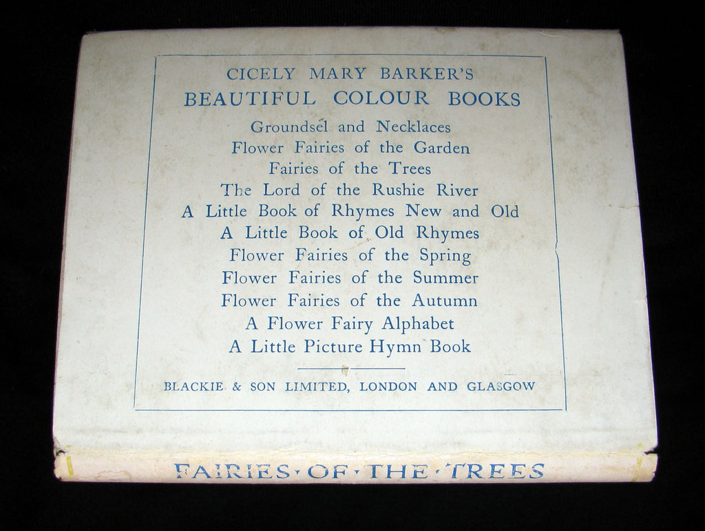 The book : Rare and very nice early edition with the dustjacket of this exquisite volume by Cicely Mary Barker. One of the great fairy texts, personifying every variety of flower of the trees with a fairy child. The back of the jacket has twelve previous publications by the author (including this one) , the latest (A Little Picture Hymn Book) being published in 1929, making this title's publication date sometime in the early 1930s.