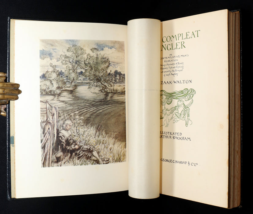 The book: A striking illustrated edition of Izaak Walton’s beloved 17th-century treatise on the art and philosophy of angling, beautifully reimagined by Arthur Rackham. First published in 1653, The Compleat Angler is part fishing manual, part meditative prose, and part pastoral dialogue, revered for its charming insights into nature and its celebration of contemplative life. This finely bound copy reflects the publisher’s special presentation standard issued before the trade cloth editions and makes an elegant collectible for Rackham enthusiasts and lovers of sporting literature alike.