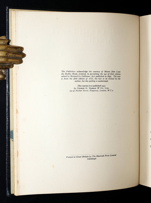 Publisher: London, George G. Harrap & Co. Ltd., 1931 (first published 1653; this edition based on the 1676 fifth edition, edited by Richard Le Gallienne, originally printed in 1897). First edition illustrated by Arthur RACKHAM.