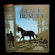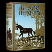 Binding: Attractive and very good original publisher’s olive-green cloth binding with a striking illustrated cover in green, black, blue, and white depicting Black Beauty against a wooded backdrop. The spine is lettered in black with a vignette of a rider on horseback (hinges fine, overall slightly worn and scuffed - as shown) under a protective removable mylar cover.