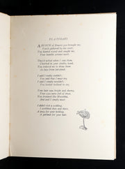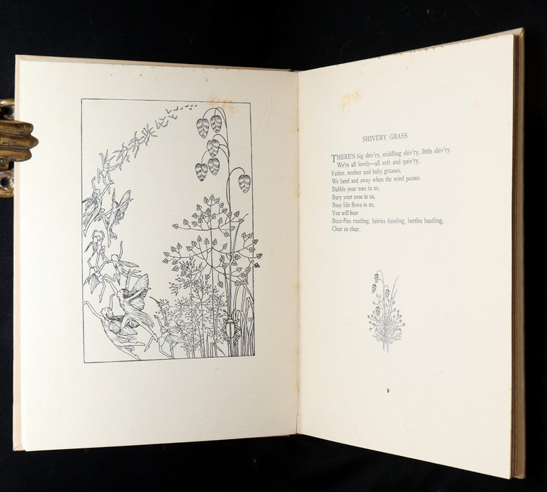 The book: A charming and scarce 1934 first edition of A Bunch of Wild Flowers, a whimsical collection of illustrated verses that celebrates the delicate flora of the Australian landscape through the lens of fairy lore and childlike wonder. Outhwaite pairs each native flower—like the Milk Thistle, Dandelion, and Wild Violets—with a corresponding poem, frequently accompanied by fairies, sprites, and woodland creatures. A wonderful example of Outhwaite’s unique ability to blend the botanical with the fantastical, capturing the imagination of both young and adult readers.