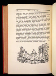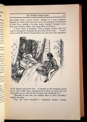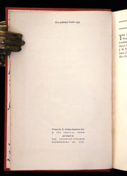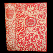 Binding: Attractive and very good original red cloth binding with an intricate gilt and cream Art Deco design, featuring a crown and floral motifs. Spine with gilt titles on an ornate decorative background (hinges fine, overall slightly worn and scuffed - as shown, light and very small black stains on the right upper part of front board - as shown) under a protective removable mylar cover.