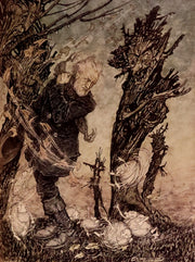 The illustrator: Arthur Rackham (1867-1939) was a prolific British artist and illustrator, best known for his deluxe editions of popular children's books. Artistically inclined since childhood, Rackham started illustrating for newspapers, but it was not until he began drawing for children's literature that he received critical acclaim.