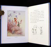 The book: Joan in Flowerland is a delightful story following the adventures of Joan, a young girl, and her puppy, Wiggles, as they explore a magical garden filled with fairies and floral wonders. Tarrant’s illustrations, known for their intricate detail and fairy-like charm, beautifully complement the tale, immersing readers into the fantastical world of flower fairies and enchanting flora. This book is a wonderful example of Tarrant's ability to capture the innocence and beauty of fairyland, making it a treasured piece for collectors of children’s literature and fairy art. An exceptional copy in the original dust jacket!