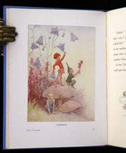 Binding: Attractive and near fine original blue full-cloth binding with dark blue decorative titles and illustration on the front cover and spine. The book includes the original dust jacket featuring a charming illustration of fairies and flowers in very good condition (small tears, chips, and tears - as shown) under a protective removable mylar cover.