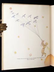Binding: Attractive and very good publisher’s original tan cloth binding, stamped in maroon with an illustration of the Little Prince on the front cover and spine.  Accompanied by a good (chips and tears - as shown, price clipped) under a protective removable mylar cover.