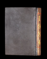 Binding: Attractive and fine exquisite binding by Bayntun-Riviere finely bound in full grey morocco leather, the front cover with "George Orwell" lettered in gilt. Smooth spine with "1984" in gilt in large numerals in a red fillet compartment, marbled endpapers, all edges gilt (hinges fine) under a protective removable mylar cover. An elegant and wonderful binding!
