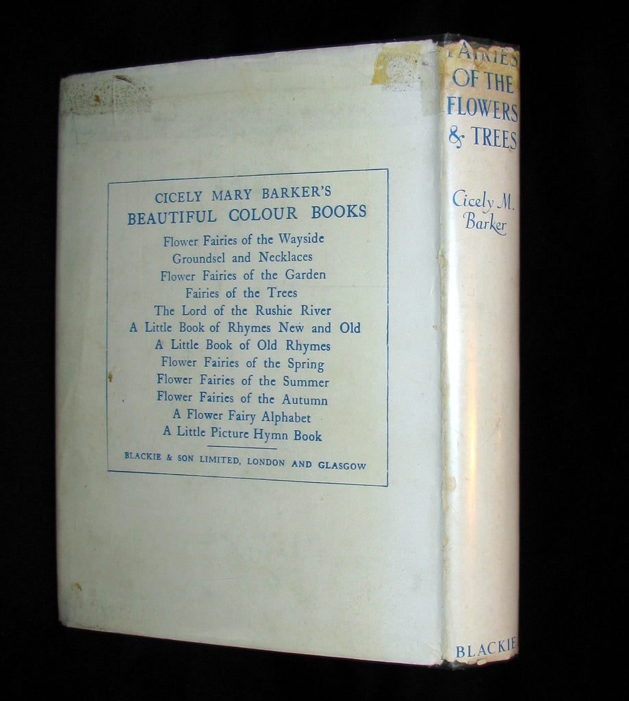 The book : Rare and very nice First edition with the dust jacket of this exquisite omnibus volume by Cicely Mary Barker. The scarcest of the combined Flower Fairies volumes. `Flower Fairies of the Garden', `Flower Fairies of the Wayside' and `Flower Fairies of the Trees'. One of the great fairy texts, personifying every variety of flower, grass, plant with a fairy child.