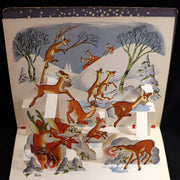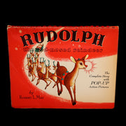 The book: Attractive and very good original Pop-up Edition of Rudolph the Red-Nosed Reindeer -- a fictional reindeer created by Robert L. May. Rudolph is usually depicted as the ninth and youngest of Santa Claus's reindeer, using his luminous red nose to lead the reindeer team and guide Santa's sleigh on Christmas Eve. Though he initially receives ridicule for his nose as a fawn, the brightness of his nose is so powerful that it illuminates the team's path through harsh winter weather. Ronald D. Lankford, Jr., described Rudolph's story as "the fantasy story made to order for American children: each child has the need to express and receive approval for his or her individuality and/or special qualities. Rudolph's story embodies the American Dream for the child, written large because of the cultural significance of Christmas."