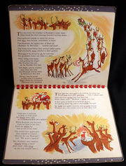 This softcover Rudolph poem booklet was first distributed by Montgomery Ward during the 1939 holiday season. Shoppers loved it and 2.4 million copies were distributed. Wartime restrictions on paper use prevented a re-issue until 1946. In that year, Montgomery Ward gave away another 3.6 million softcover copies to its shoppers.