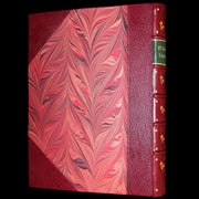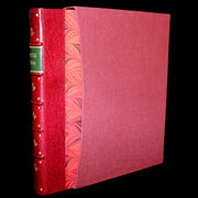 Binding: Attractive and near fine binding elegantly bound in burgundy half morocco leather over matching marbled paper sides (hinges fine) under a protective removable mylar cover in a fine matching slipcase. A beautiful binding!
