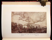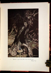 The illustrator: Arthur Rackham RWS (19 September 1867 – 6 September 1939) was an English book illustrator. He is recognized as one of the leading literary figures during the Golden Age of British book illustration. His work is noted for its robust pen and ink drawings, which were combined with the use of watercolor, a technique he developed due to his background as a journalistic illustrator.