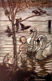 Title: Peter Pan in Kensington Gardens from the Little White Bird by J. M. Barrie, illustrated by Arthur Rackham.