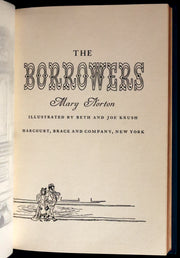 The book: Exquisite first US edition of The Borrowers -- a children's fantasy novel by the English author Mary Norton, published by Dent in 1952. It features a family of tiny people who live secretly in the walls and floors of an English house and "borrow" from the big people in order to survive. The Borrowers also refers to the series of five novels including The Borrowers and four sequels that feature the same family after they leave "their" house. The Borrowers won the 1952 Carnegie Medal from the Library Association, recognising the year's outstanding children's book by a British author. In the 70th anniversary celebration of the medal in 2007 it was named one of the top ten Medal-winning works, selected by a panel to compose the ballot for a public election of the all-time favourite.