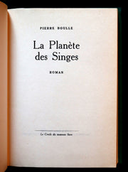 The book: Rare and attractive First limited edition of one of the most important books in the history of science fiction - La Planète des Singes, known in English as Planet of the Apes in the US and Monkey Planet in the UK. It is a 1963 science fiction novel by French author Pierre Boulle. It was adapted into the 1968 film Planet of the Apes, launching the Planet of the Apes media franchise.
