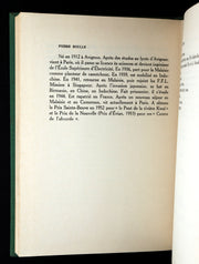 The author: Pierre Boulle (1912–1994) was a French author best known for his novels La Planète des Singes and The Bridge Over the River Kwai. A former engineer and resistance fighter during World War II, Boulle's experiences informed his incisive critiques of human behavior and society. His works transcend genres, blending satirical allegory, speculative fiction, and psychological insight.