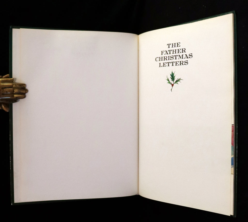 The book: Beautiful and attractive First UK Edition (published before the First US Edition) of The Father Christmas Letters, also known as Letters from Father Christmas, -- a collection of letters written and illustrated by J. R. R. Tolkien between 1920 and 1943 for his children, from Father Christmas. They were released posthumously by the Tolkien estate on 2 September 1976, the 3rd anniversary of Tolkien’s death. They were edited by Baillie Tolkien, the second wife of his youngest son, Christopher. The book was warmly received by critics, and it has been suggested that elements of the stories inspired parts of Tolkien's The Lord of the Rings. The UK's first edition was by Allen and Unwin on 2 September 1976, three years after Tolkien's death. The Houghton Mifflin First US edition was released later that year on 19 October.
