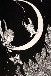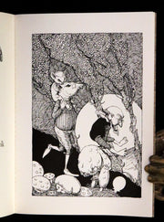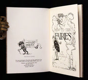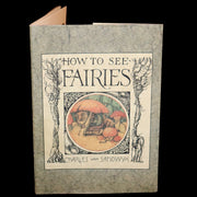 The book: Beautiful first edition of How to See Fairies, a collection of poems, stories, pen and ink, and watercolor illustrations showcasing fairies and their animal friends. The original features French flaps and sixteen hand-bound pages.