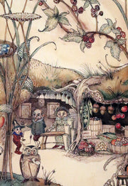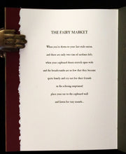 The book: A Wonderful First Edition of this visit to the Fairy Market, dedicated to the “everlasting memory of Arthur Rackham. “