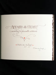 The book: Beautiful signed edition of Affairs Of The Heart According to Peaceable Creatures featuring calligraphic text and watercolor illustrations. A wonderful book!
