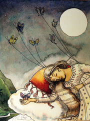 Binding: Fine binding. Bound in metallic blue card wraps with an integrated shimmering gold card cover, delicately adorned with hand-painted bamboo borders. Both inside flaps are decorated with colorful butterfly illustrations. Spine hand-stitched, as issued. Paper title label and an exquisite tipped-on watercolor plate grace the upper cover. A pristine, fine copy.