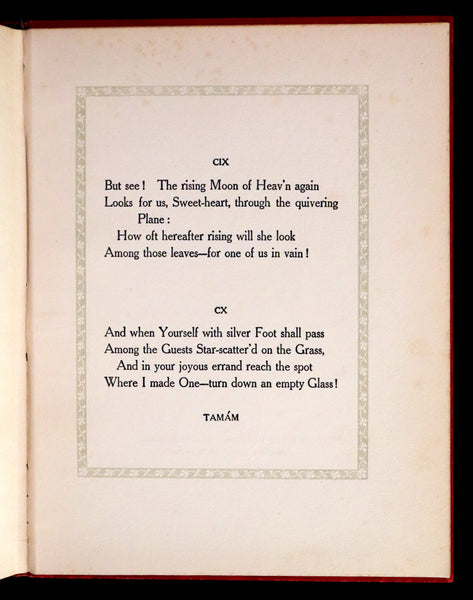 Pages: Unpaginated.110 quatrains, printed on the recto of each leaf. Text reprinted from Fitzgerald's second edition.